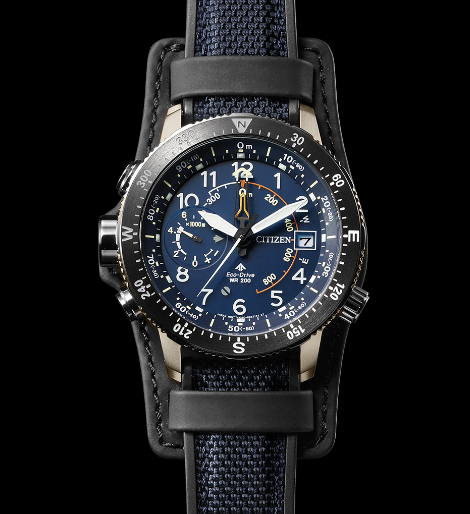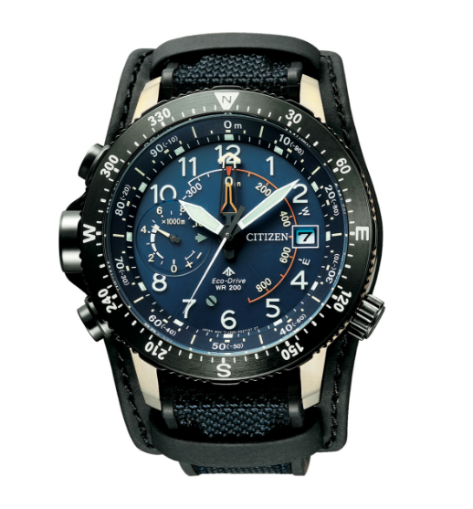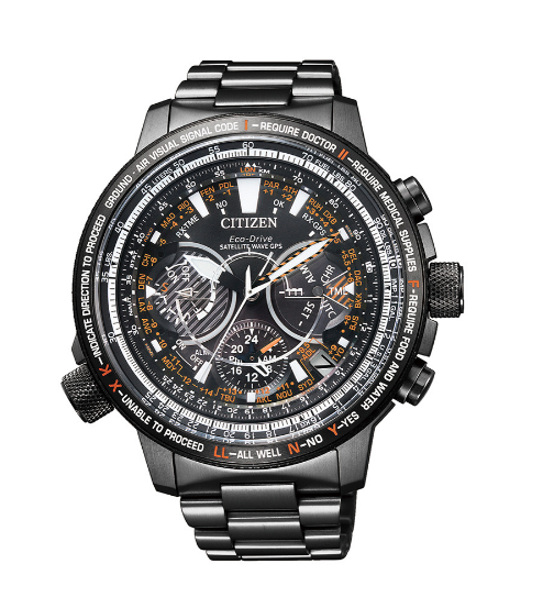 ▲外圈加上陆空视觉信号编码的光动能GPS卫星对时表款CC7015-55E,相当具有航空表的味道