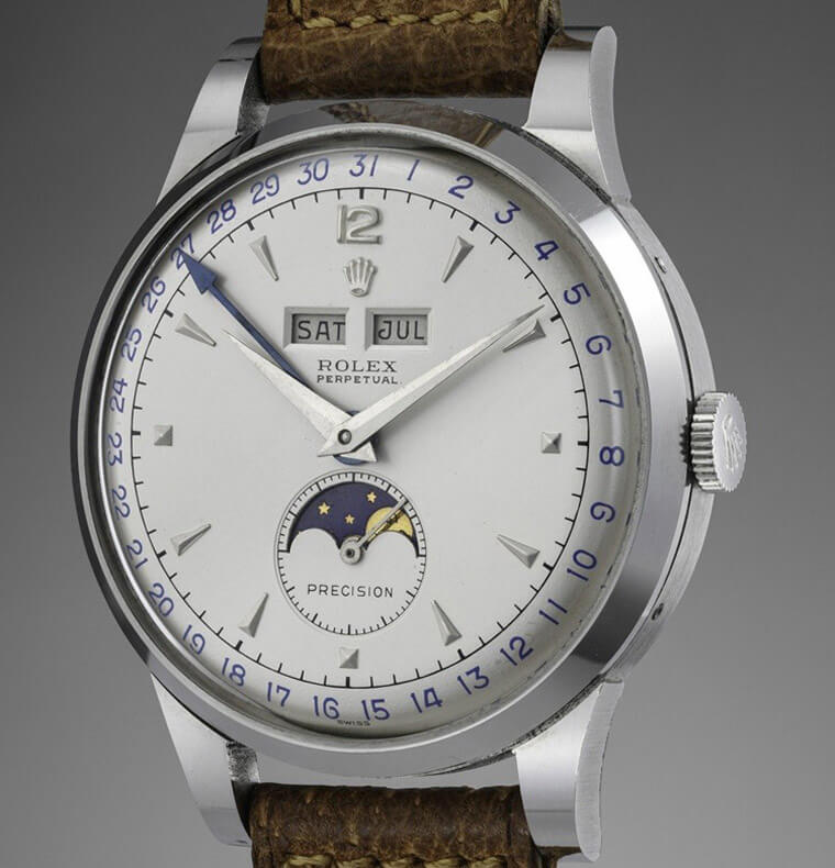 ▲劳力士8171不锈钢全日历月相表,预估价约为台币1553万。图片:PHILLIPS富艺斯拍卖