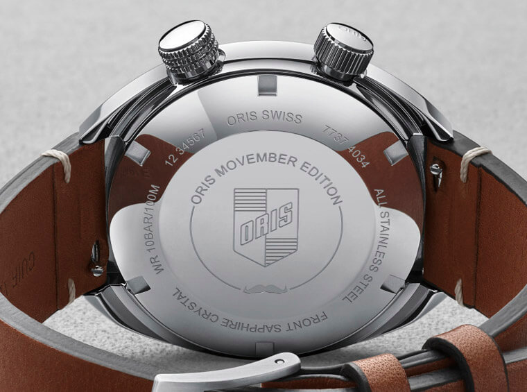 ORIS 2019年再度与Movember基金会合作,共同为了协助男性改善健康问题而努力,前者推出一款Chronoris Movember蓄鬍特别版,手表的部分销售收益将捐赠给Movember基金会。