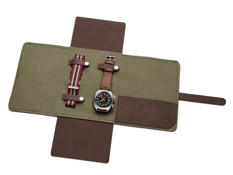 ▲不论搭配皮表带或不锈钢链带的手表套组都会附上一条红白色相间的NATO纺织表带以供表主替换。