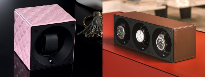 对于只想购入单只上链盒的表迷, SCATOLA del TEMPO吸引人的点在于不到台币2万价格就可以购入 Rotor-One 享受顶级皮革的奢华,而SwissKubiK则在于它的简约与未来的可变性,加上智能的结合,对于年轻族群,或是忙碌的商务人士而言,不失是一大卖点。SwissKubiK 10cm3 与12cm3立方体设计,就算初次只购入单只上链盒,未来拥有其它上链盒,立方体的造型堆叠起来也不会突兀,Multiple系列也有针对少量2-3只的收纳选择。SCATOLA del TEMPO相比SwissKubiK 这种陈列式的收纳,对于拥有多只自动表的表迷而言,SCATOLA del TEMPO显得更加雍容华贵,採用顶级皮革、搭配柔软提花丝绸提升大器感,不限于尺寸亦给予藏家更弹性的收纳,对于有多只自动表的藏家似乎更为合适。
