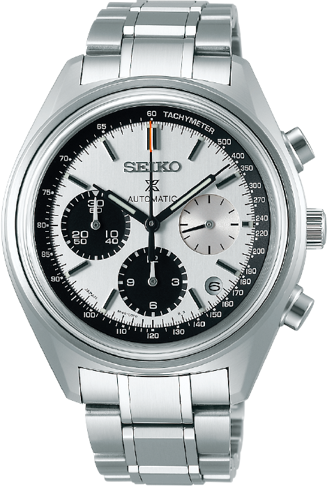 全新Prospex系列手表面盘採用当年备受好评、被暱称为「熊猫」而着名的设计,即为两组黑色小面盘搭配白色主面盘的黑白分明风格。同时,此款新作也沿用了经典款设计,如髮丝纹处理、以橘色点缀的计时秒针末梢、时标以及测速表圈标记等等。而新表款增设了第三个小面盘,具有指示目前时间的读秒针功能,升级版设计更採用了箱型蓝宝石水晶镜面以及使用超镜面研磨法制成的表壳。