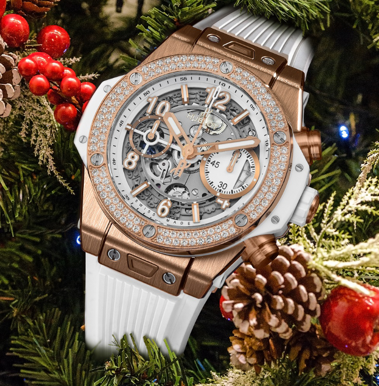 ▲宇舶推出三款全新Big Bang Unico手表,白金配色让手表充满圣诞气息。
