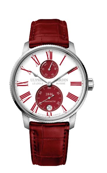 搭载优雅、纤细的罗马数字时标和梨形钢质指针,旋入式表冠上刻有雅典表标志。时标、6点钟位置的小秒针表盘和12点钟位置的动力储存显示视窗均以朱砂红珐琅粉末烧制而成,以纪念在上海举行的第二届中国国际进口博览会,红色鱷鱼皮表带上饰有红色安全缝线,亦象征对中国文化的致敬。