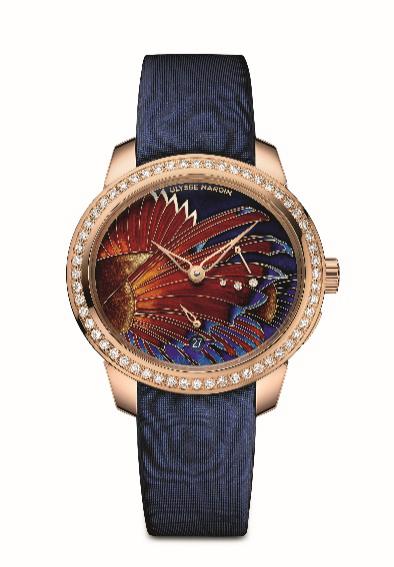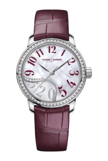 搭载可靠的自动上链机芯UN-815,融合精湛的工艺、材料、尖端创新、悠久工艺和迷人的女性魅力。圆形珍珠母贝的左下方装饰10颗精美的钻石,而不銹钢表圈上则镶嵌超过76颗钻石。石榴红色皮革表带搭配红色数字,与珍珠母贝的华丽色调及钻石的璀璨光芒相得益彰,时光雋美,钻石永恒,红色亦将浪漫挚爱的时刻定格在腕间。