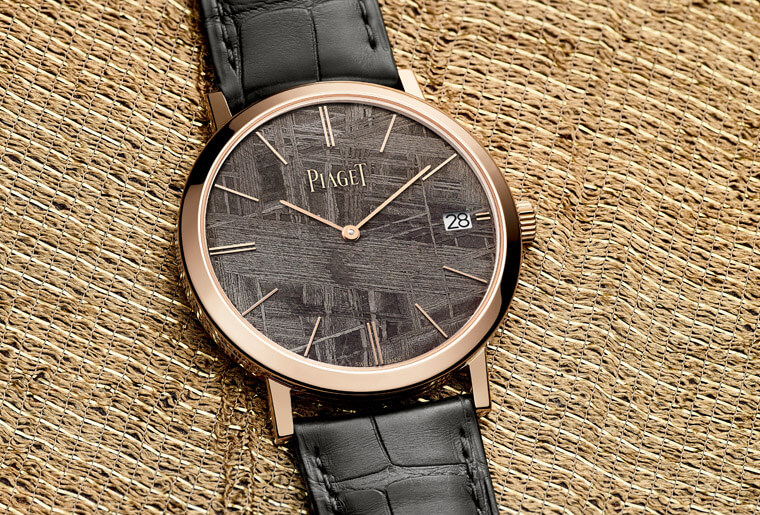 Altiplano超薄表是伯爵2019年的重点之作,虽然它的功能只是基础的二针加上日期显示,不过为了呼应超薄设计,连带的时标与指针等元素也都变得很修长,这样一来使得面盘採用的灰色陨石材质更能被佩戴者尽情欣赏,它与陀飞轮款式同为玫瑰金材质,由于手表的表圈没有额外镶钻或其他宝石,因此看起来也更适合男性佩戴,温润平滑的玫瑰金与陨石那几经大气层摩擦挤压形成的不规则纹理刚好呈现出对比感,而一如预料,由于陨石这种材质本身就算稀有,通常表厂採用它们来装饰手表时往往会採限量策略,这款Altiplano腕表40mm二针腕表本身也是限量发行。