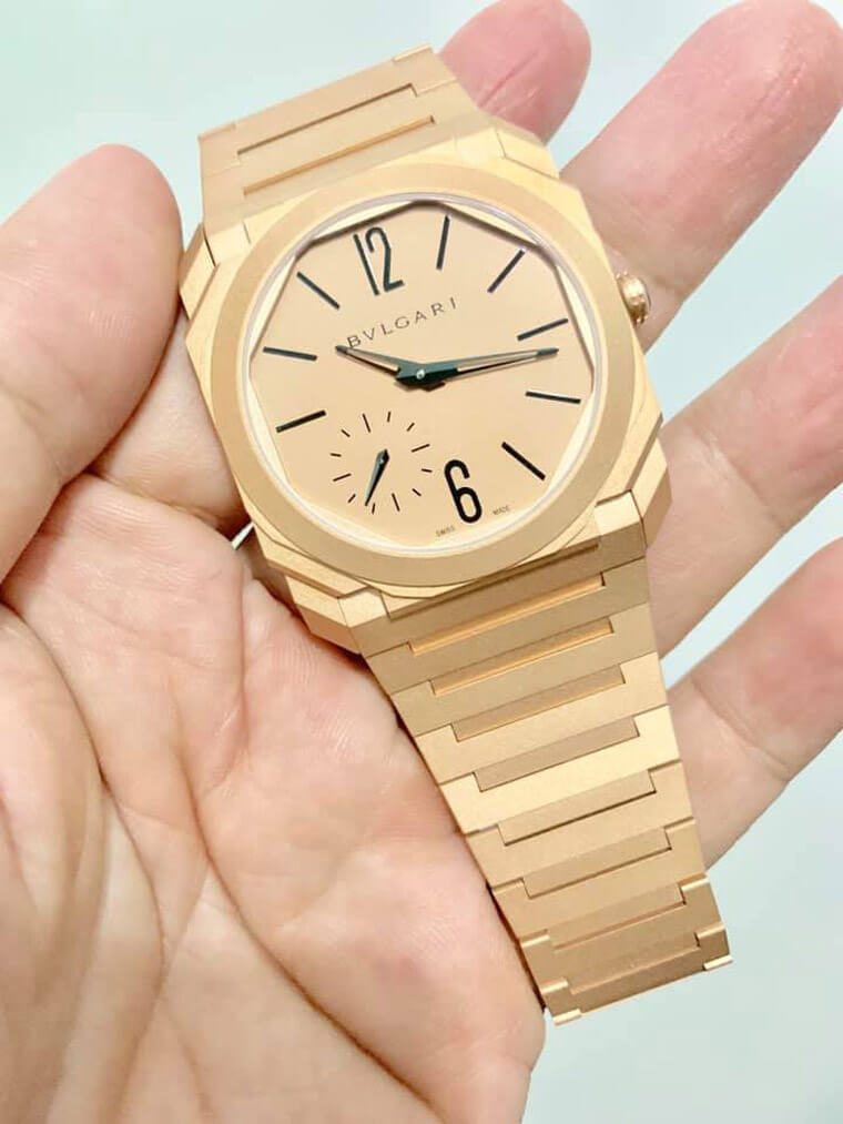 以前年纪还小的时候对于手表的价值比较没什麼概念,倒是满常看到长辈都喜欢戴一些金色的手表(因为不确定那是不是K金材质,所以称金色的表),甚至偶尔还有一些钻在上面,远远看去就是金光闪闪、Bling-Bling的,当时就觉得那样看起来虽然很豪气,但也不免流于俗气,好像怕别人不知道自己很有钱似的,因此「戴金表很俗」这个观念就在脑中根深蒂固了好一阵子;最近看到有表友在爱表咖分享他的心路转变历程也跟这有关,这位表友刚入手一只宝格丽Octo Finissimo超薄自动表,这款表除了比较常看到的钛金属或不锈钢表壳之外,表友入手的就是一只K金的版本。他感嘆到「以前看长辈戴金表感觉很俗,现在选表却都是先从K金表壳的开始看起」,至于为什麼会有这样的转变,他自己分析道,可能是因为年纪不同了,一些观念、审美的角度也都在转变,再来就是K金表怎麼说都比较保值,如果将来要把手表传承给自己下一代,金表肯定会让他优先考虑。