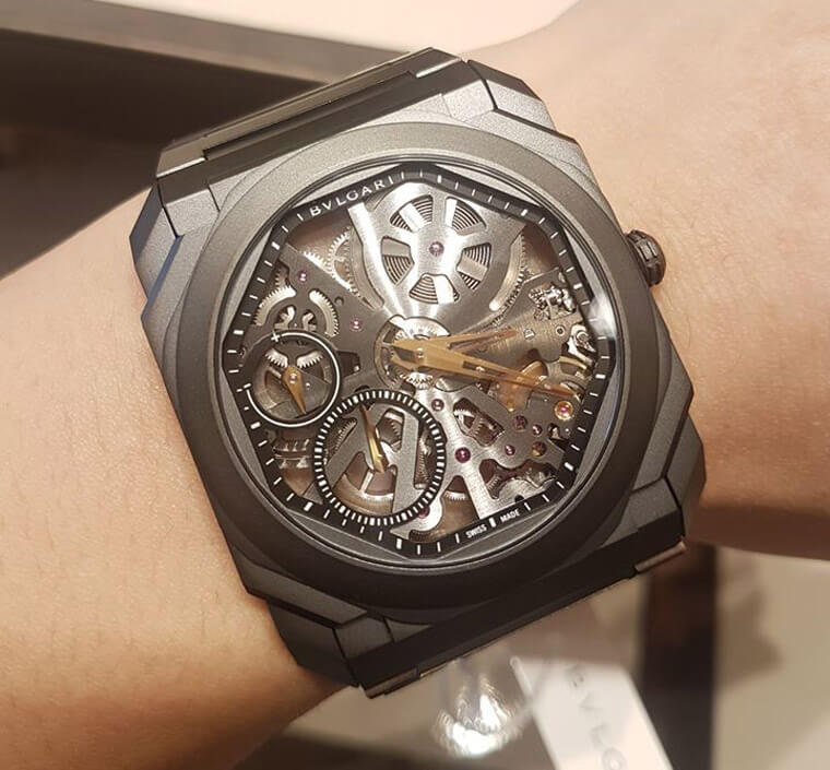 ▲另外还有表友戴的是手上链的Octo Finissimo Skeleton镂空表。