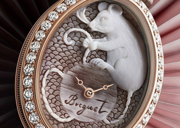 ▲宝璣2020年所推出的鼠年生肖表除了Classique 7145之外,尚有Reine de Naples Cammea 8955,此为宝璣睽违两年后再度推出的贝壳浮雕生肖表作品。