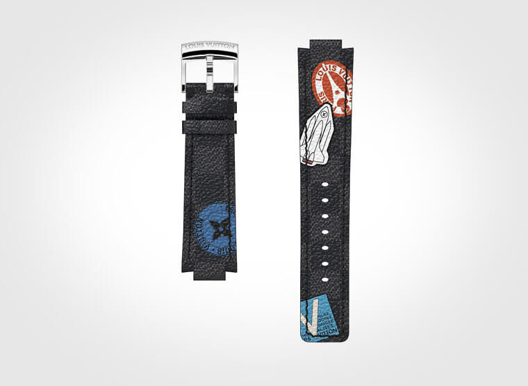 ▲Tambour腕表除了面盘,表带也有印上图案,透过可换式表带系统得以随心所欲更换。