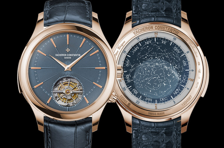 18K金材质/2755 TMRCC手动上链机芯/时、分、小秒显示/三问功能/陀飞轮装置/星空图显示/恒星时、月份显示/蓝宝石水晶镜面/表径45mm