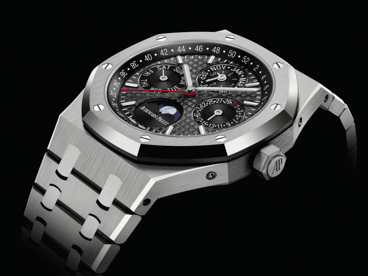 ▲爱彼为这一款手表採用了凝聚品牌基因的特色复杂功能——万年历。自1875年创立至今,爱彼在天文复杂功能时计领域造诣深厚,并始终致力于打造融合创新制表工艺与超卓设计于一身的万年历表。