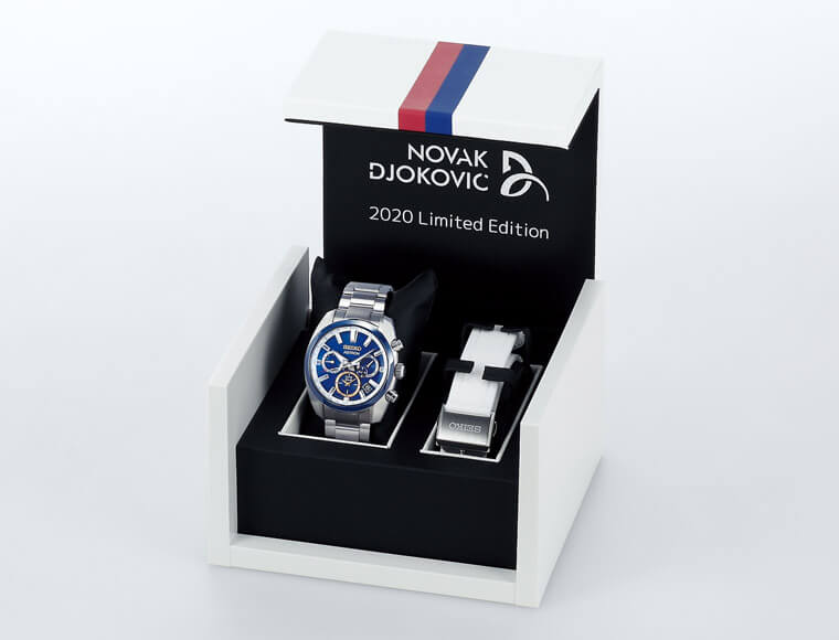 ▲Astron乔科维奇限量表的外盒同样融入赛尔维亚配色概念,同时SEIKO也附上一条白色硅胶表带可供表主随时替换。
