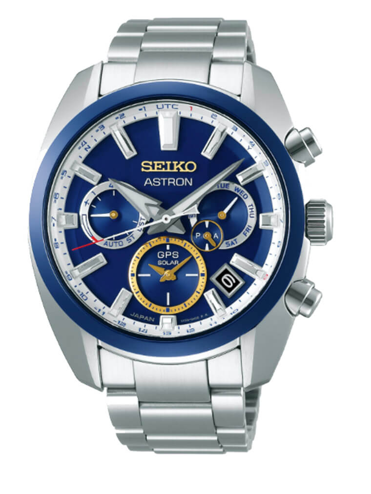 Astron乔科维奇限量表搭载的5X系机芯拥有SEIKO全新研发的超低功率GPS模组电路,特色在于它的用电量只需前一代机芯的1/2电力,这系列机芯也是目前为止世界上最小、最轻薄的GPS太阳能指针式手表机芯,在充满电的状况下,手表可以持续运作六个月,而它的显时功能也是相当齐全,除了基本的时、分、秒,还有万年历、世界时间、两地时间、日夜显示、动力储存显示等多元功能,在身蓝色面盘的衬托下展现出佩戴者优雅且动静皆宜的个性。