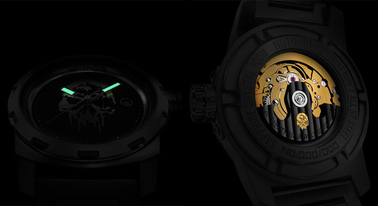 恶名昭彰经典限量机械表首波推出两款黑色PVD(面盘分别採用银色或金色骷髏头金雕)和一款金色PVD版本,表款强调装的是瑞士Sellita自动机芯,加上馆长在参与设计时就希望它是一款可以戴几十年都没问题的耐操好表,所以花在规格和用料上的成本没办法降得太低,因此那三款恶名昭彰经典限量机械表的定价设定为NT$ 36,900,每个顏色各限量200只。当时消息一出引来不少网友热议,馆长的铁粉当然跃跃欲试,但也有人质疑这种价钱对还没出社会的学生族群而言是不小负担,或是也有些人纯粹就是看热闹,真要他掏出三万多块来买这款表,他可能也下不了手。原本小编也是对馆长手表的销售情况抱持观望态度,甚至从馆长的Po文中也可以看出他没有信心大家会想买单这款表(当初他说如果没人买他会自己买下这600只表,日后再另外帮手表想出路)。