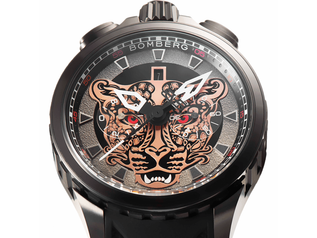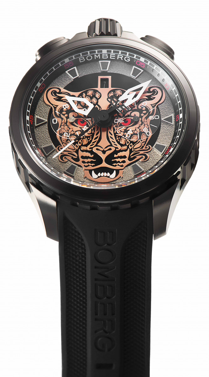 这款新作的每个细节都经过精心考量,设计与功能相辅相成臻至完美。45毫米的超大表壳展现鉅细靡遗的细节,以多层次的镶贴装饰创造出美丽而微妙的视觉深度,手表的面盘中央是这只猫科动物的头像。时标和剑形指针上的白色Super-Luminova™夜光涂层确保即使在完全黑暗的环境中依然清晰可读,黑色PVD处理赋予表款坚固特质与调性。