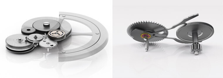 而9RA5机芯提高动力储存的关键在于它採用了双发条盒设计,因为机芯朝薄型化发展,所以两枚发条盒也必须更善用空间,GS採用一大一小的配置,使得双发条盒可以合力输出120小时,也就是5日链的动能。