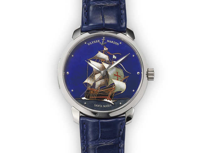 ULYSSE NARDIN雅典是目前业界持续有系统地在经营珐琅彩绘表(尤其是掐丝珐琅)的一家;老实说珐琅彩绘表现在在市场上已经没那麼稀奇了,各家品牌逢年过节就常常会生出几只来作纪念,不过这裡强调的重点是「持续」和「有系统」,光以航海这个主题来说雅典就几乎年年有新作,波多贝罗港、阿奇利号、凯萨号、乃至于这次介绍的圣玛利亚号,所有航海史上的大港名舰几乎都有可能成为他们家珐琅彩绘的主题,更别提除此之外他们还有其他题材的系列、复杂功能款式也常常加上一块彩绘当装饰,相对于其他品牌点缀性的推一推,珐琅彩绘表的确在雅典的产品线中占了一个颇不小的比例。是以当2011年底他们家宣布买下Donzé Cadrans SA珐琅面盘厂的时候我们并不会太惊讶,偶尔出一款的话当然可以发包给像Anita Porchet这类Freelance的彩绘师,但是一年要推好几款的话能有内部的编制来执行当然还是比较有效率。