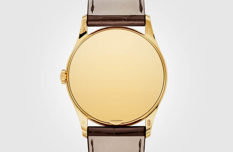 ▲黄金底盖没有任何点缀的装饰,就是拋光的亮晶晶,呈现贵金属的原始尊贵感,至于底盖下方的凸缘设计则是方便制表师维修开盖之用。