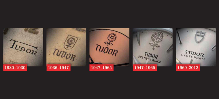 ▲帝舵历代标志的演进,从图中可见在1960年代前,帝舵标志几乎都会加上玫瑰来象徵与都鐸王朝的渊源。