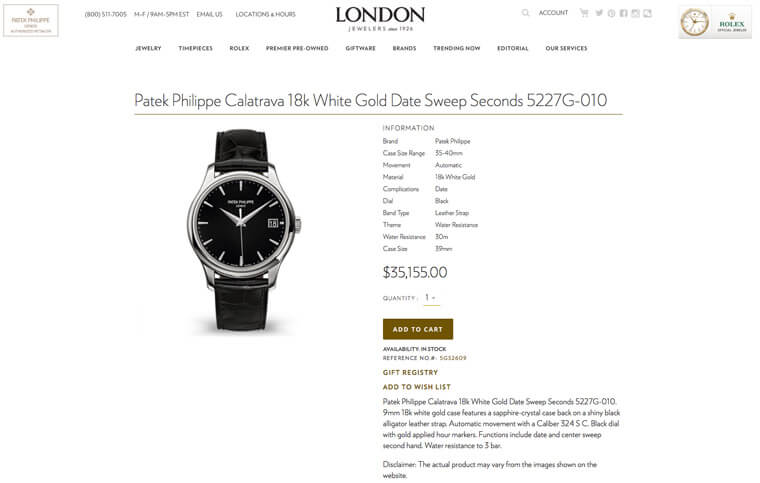 至于另一家AD店London Jewelers则可以买到像Grand Complications 5159R万年历这等的复杂表(定价98,207美元),凭心而论款式选择还是不比过往在店面陈售的多元,所以目前这种线上卖表的作法感觉上还带有点实验性质,就是加减多个管道让消费者可以注意到百达翡丽局部的手表,至于真正能成交的订单有多少就不得而知了,只能说这是过渡时期的替代作法,一时间还是不太可能成为百达翡丽销售手表的主要模式,这点从品牌自己的官网还是未开放线上购表可以看出他们的态度,不过怎麼说百达翡丽还是做出了让步,等到疫情比较好转时,或许品牌也会开始思考类似这种线上购表真正实施的可能性。
