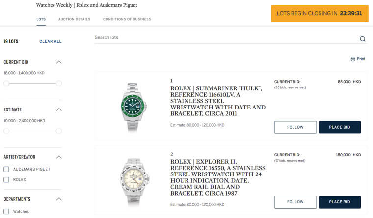 新冠肺炎在全球肆虐,实体店面生意因为人们现在更倾向多待在家中而遭受巨大打击,许多行业的店面因为生意惨澹乾脆决定暂时停业甚至直接收摊,像之前一些钟表拍卖行举行的拍卖会也由于受到疫情影响而决定延后或取消,照理说钟表拍卖会应该也是这波疫情影响下的受害者,但是比起消极的关门不做生意,近期看起来这些拍卖行慢慢在非常时期找到了不错的替代办法——改透过网路举办线上拍卖。