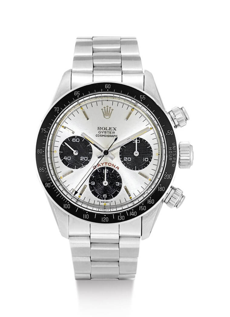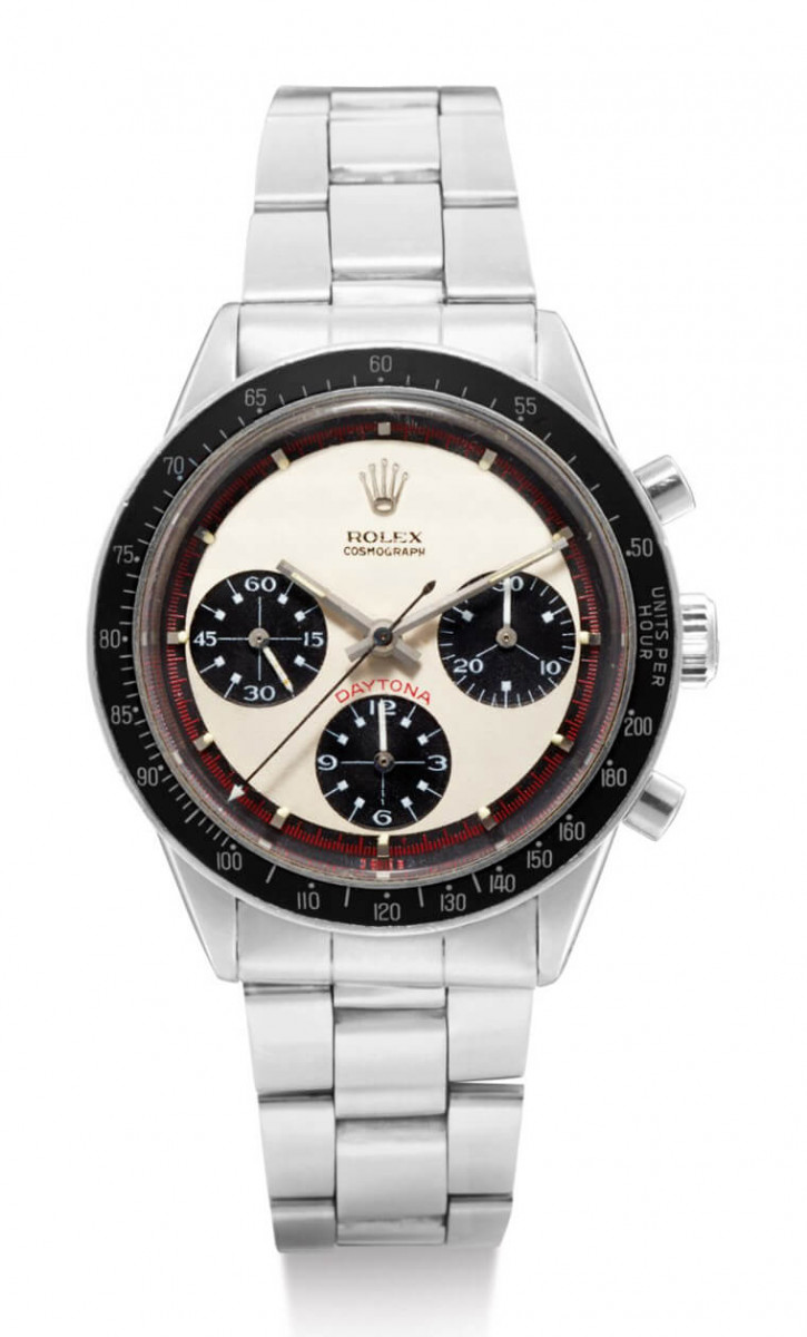 Sotheby's苏富比拍卖行在新冠肺炎疫情影响下虽然有些拍卖会必须延后举行,但同一时间他们也开始多方尝试线上拍卖的形式,例如4月1日~4月8日苏富比展开以周为单位的”Watches Weekly”小型线上拍卖,该次拍卖主题为劳力士和AP手表,总共有19只来自这两大品牌的古董表待售,这次的线上拍卖经过一周的激烈竞标后结果终于出炉,结果拍卖结果身价前五高的手表都被劳力士包办,其中拍出最高身价的是本次拍卖会上的重头戏之一——编号4号的Daytona 6241 “Paul Newman”,这款表原本就预估拍价会落于100万~200万港币之间,结果实际成交价格是冲到港币2,375,000!