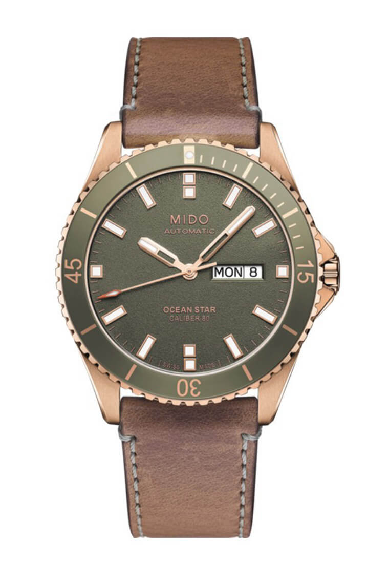 海洋之星领航80小时腕表直径为42.5mm,配备不锈钢PVD玫瑰金缎面表壳,加上绿色拋光铝制单向旋转表圈、面盘的12点钟位置饰有经Super-LumiNova®夜光涂层处理的白色点状。双面防眩蓝宝石水晶玻璃镜面,令人能够尽情欣赏带有粒纹装饰的面盘,此外时标和指针上也都添上Super-LumiNova®夜光涂层,确保各种环境下不受影响的易读性。玫瑰金PVD缎面镂空时针和分针和秒针尖部也都涂覆Super-LumiNova®夜光涂层,其中秒针尖端还有橘色点缀,象徵着美度的代表色,至于日期和星期窗则是位于3点钟位置,显时资讯符合日常所需使用。