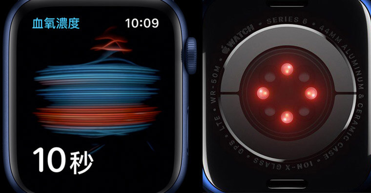 除了内、外部规格之外,很多人更关心Apple Watch第6代到底加入了哪些新功能,其中最大的亮点就是血氧浓度量测功能,这项功能的原理简单来说是运用绿色、红色和红外线LED发出光线照射手腕上的血管,并以光电二极体测量反射回来的光量,然后手表内建的演算法会计算出你的血液顏色,进而判断血液中的含氧量(不过目前还不清楚这项功能在台湾会不会像心电图般受到法规限制而无法使用)。此外Apple Watch第6代也还有睡眠追踪功能,用意是帮助佩戴者培养规律的睡眠习惯,并能追踪每晚的睡眠情况,让人可以订定属于自己的睡眠目标。