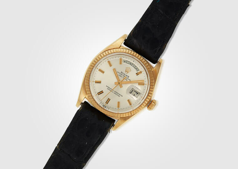 ▲亨利福特二世于1970年买下这款Day-Date Ref. 1803,在他离世前留给自己的夫人,近期这款珍贵手表于佳士得线上拍卖出售,估计为美金3000元起跳。Source:christies