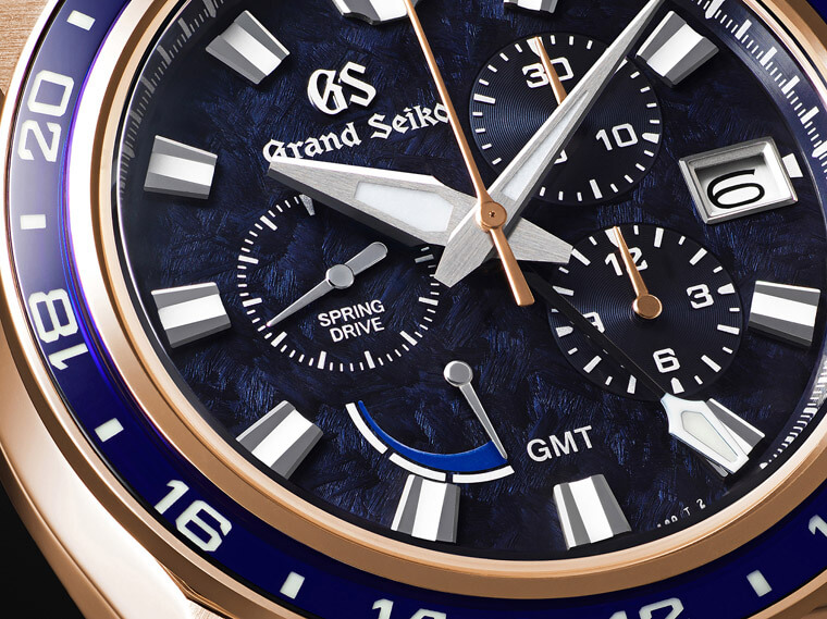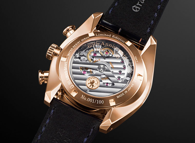 18K玫瑰金材质/Spring Drive 9R96机芯/时、分、小秒、日期显示/计时码表功能/两地时间显示/动力储存显示/蓝宝石水晶镜面、透明底盖/防水200米/表径44.5mm/限量100只/参考价:NT$ 1,400,000