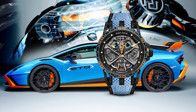 身为蓝宝坚尼的合作伙伴,ROGER DUBUIS罗杰杜彼这次的动作也挺快的,就在Huracán STO发表没多久后,罗杰杜彼也推出了新款的Excalibur Huracán STO,从手表整体的视觉印象看来,它的灵感正是源自同名车款无误。