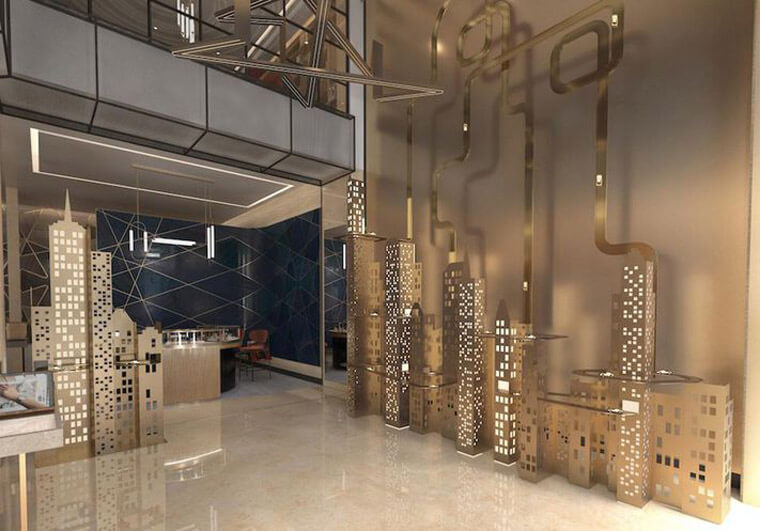 ▲在江诗丹顿纽约旗舰店开幕期间特别设置的铜色之城装置艺术。