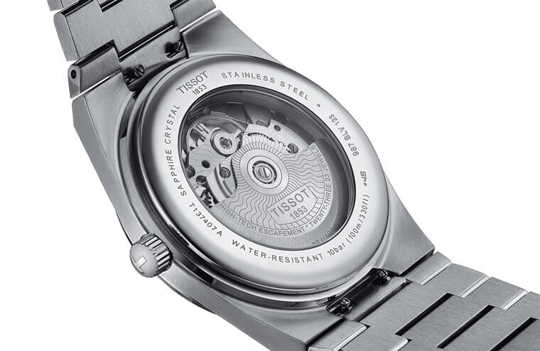 翻到表背也会发现石英机些和机械机芯的本质差异,石英版用实底盖覆盖表背,底盖上也只简单鐫刻上一些相关文字资讯,机械机芯版则是用透明底盖露出底下的Powermatic 80机芯,这枚天梭招牌的基础机芯具有超过3日的充足动能加上以Nivachron™合金制作的抗磁游丝,规格放眼同价位等级相当扎实且诱人。