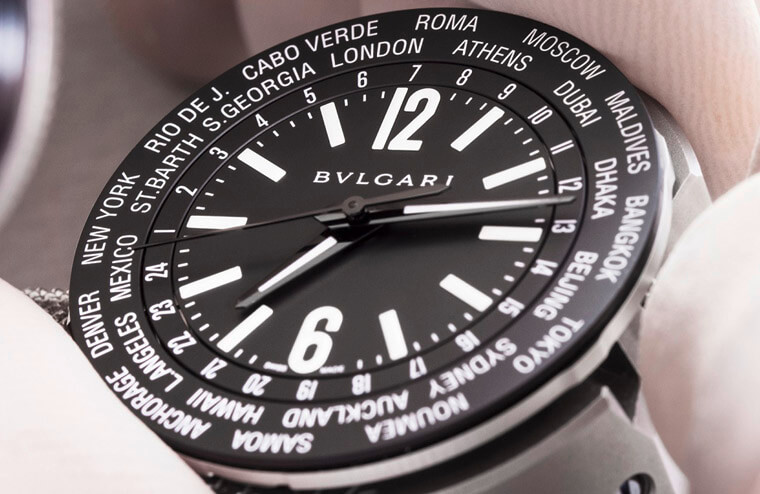 有别于一般的世界时区手表,宝格丽在创作这款表时乃是以品牌自身为出发点,从中挹注他们所推崇的环游世界乐活精神,因此我们如果仔细去阅读手表面盘上那些城市环名称,会发现它们存在一个巧合,那就是上头每座城市都会拥有(或即将拥有)宝格丽渡假村或是饭店等休閒渡假设施。例如手表上便是以渡假胜地St. Barts取代百慕达来代表加勒比海地区的时区,间接埋藏了未来环游世界推荐玩乐地点的线索在世界时区手表中,从中展现的创意令人发出会心一笑。