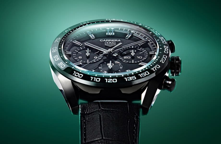 ▲泰格豪雅从传统日本色彩萌木色(moegi-iro)获得启发,打造出一款日本限定的Carrera H02湛黑版限量计时码表。
