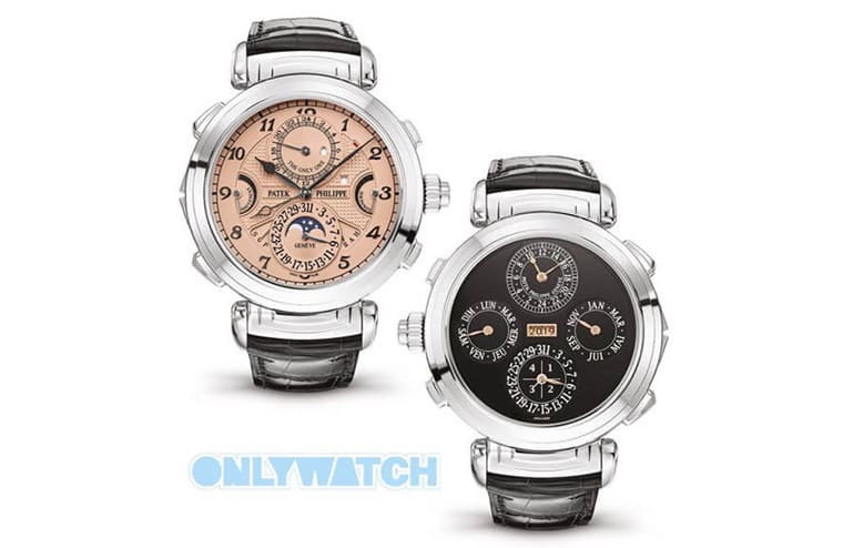 前两款缔造最高身价纪录的手表王座都坐不久,结果这种情况发展到了2019年还是一样,这次在第8届的Only Watch慈善拍卖会中,百达翡丽提供了一款双面大复杂手表6300的不锈钢孤品版(表款具备自鸣、万年历等20项复杂功能),这款表承袭PP 2014年庆祝创厂175周年纪念而打造的Ref. 5175R而来,两者奠基于相同的机芯架构,但是6300的外观造型明显比5175R内敛许多,如表圈与表耳纯以拋光处理展现简约美感,不过表侧仍有巴黎钉纹增添现代风格。6300自从首度推出以来历经一次改款,不过表壳均以白金制成,因此在第8届Only Watch拍卖会现身的版本也是迄今这款表唯一的不锈钢款式,集绝顶工艺、特别、稀有、复杂与珍贵等特性于一身,因此力助PP再度从劳力士手中抢回最贵手表的宝座。