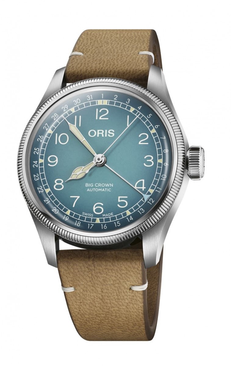 ▲ORIS与瑞士永续鹿皮制造商Cervo Volante合作,推出新款Big Crown指针式日期表。