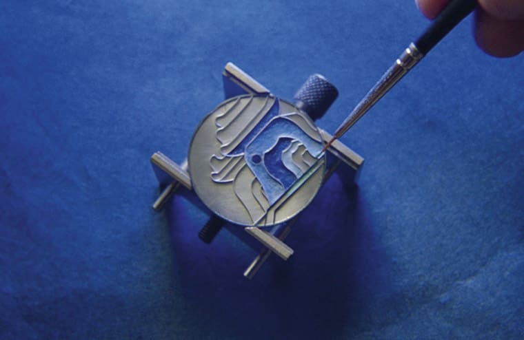 过去掐丝珐琅工艺大多出现在高级品牌身上,所以定位较偏入门级品牌的ORIS难得启用这种传统工艺将《孙悟空:大闹天宫》的着名场景搬上手表面盘让人感到相当惊艳。这款表每一枚的掐丝珐琅面盘都出自同一位瑞士工艺师之手。据知一枚面盘至少需三天才能完成。制作过程中当银线在白金底板上成型为轮廓形式时,掐丝珐琅工艺便开始进行了,工艺师接着要在轮廓线条中填入珐琅釉彩,并放入约800°C的窑中烧制,如此反覆上色、烧制后,工艺师在大功告成前还会对珐琅面盘进行拋光,使其看起来富有光泽感。