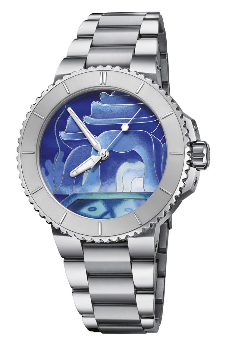 ▲ORIS第一次尝试採用掐丝珐琅制作面盘,稀有工艺价值反映在手表的限量数和定价上。