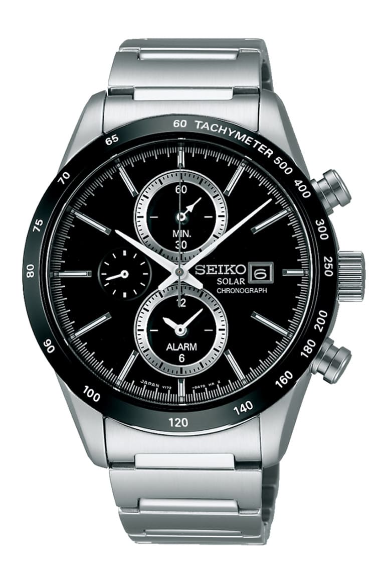 相当实用的太阳能机芯计时码表,除了三针和计时功能外,手表还配备闹铃功能和日期显示等,表圈上还有测速计刻度,外带百米防水性能。这款表的顏色选项也满丰富的,还有蓝色和白色可选,但是以消费者最终购入的纪录看来,黑色还是卖最好的款式,可能跟搭配性还有可以收敛视觉效果等因素有关。