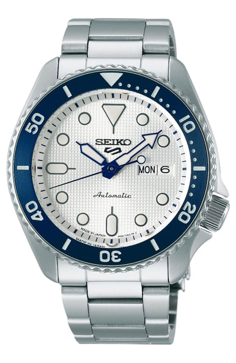 5 Sport系列是SEIKO入门机械表的热门商品,这系列的规格包括不锈钢表壳、防水100米,搭载的4R36机芯具有日期与星期显示。其实5 Sport系列款式非常丰富,有基本款也有联名款,SBSA109之所受到日本消费者爱戴跟它是品牌周年纪念款有关,除了手表限量11000只别具意义外,它採用蓝色表圈搭配银白色面盘看起来相当清爽,不花俏却很耐看。