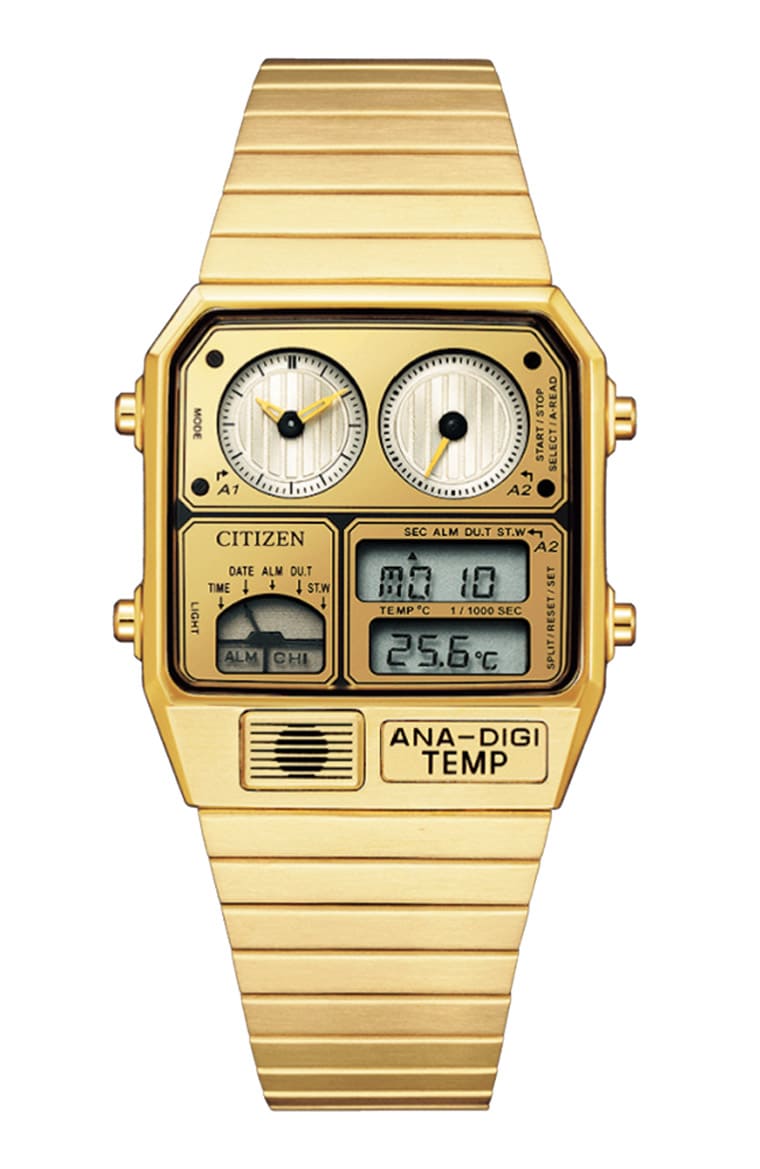 电影《星际大战》联名款,在海内外市场都很受表迷和影迷欢迎。CITIZEN 2021年曾一口气发表六款以《星际大战》知名角色为主题的作品,其中JG2112-55P的设计灵感为C-3PO机器人,因此手表外观呈现相当抢眼的金色,手表表面上半部的小表盘具有垂直线条,看起来就跟C-3PO的眼睛很像,另外手表底盖上也刻有C-3PO的肖像。这款台湾有引进一般版,当中同样有表壳镀金的款式(JG2103-72X),品牌售价为NT$ 8,900。
