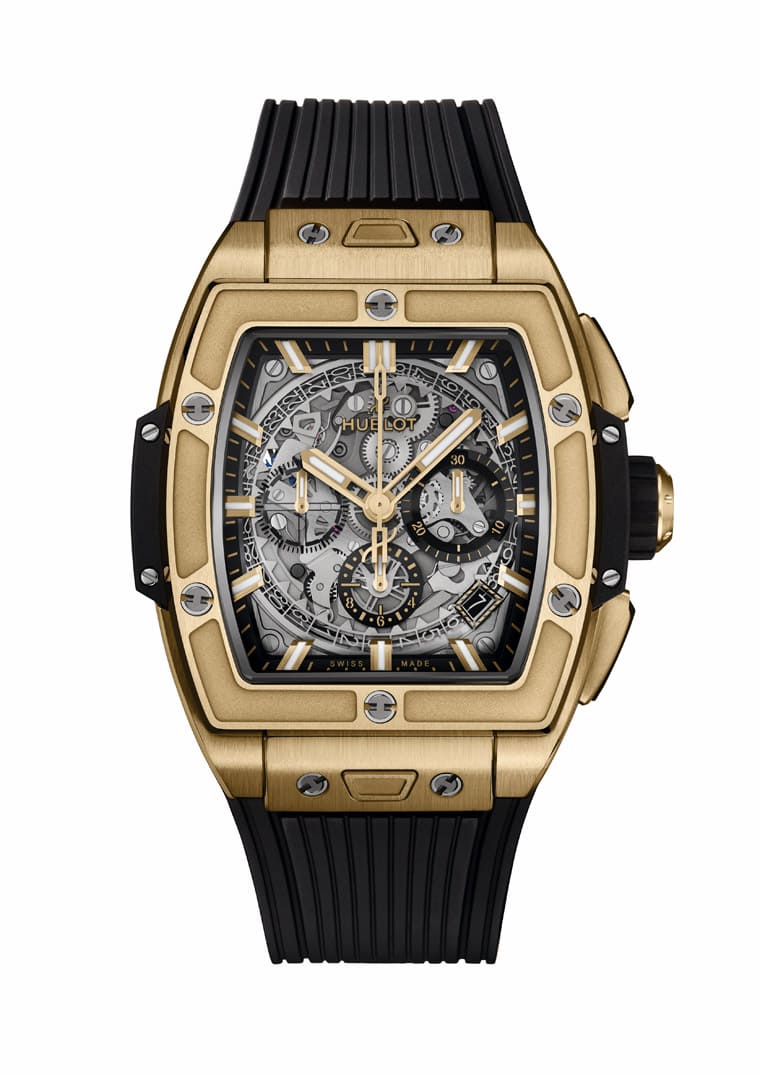 ▲启用黄金材质打造表壳的Spirit of Big Bang散发出比魔力金款式更外放的金黄色调,同时系列特色的造型以及多重修饰工艺,使腕表外观辨识度十足。