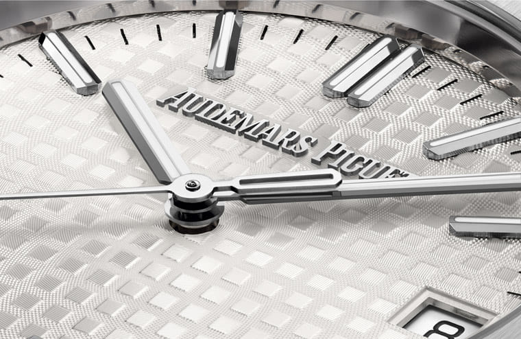 2022年新登场的37mm皇家橡树自动表(型号为15550、15551)于外部与内部都有最新的进展,首先在表带方面,AP为了提升佩戴舒适度而微调了链带设计,改良后的链带前几个链节从平行四边形改为梯形,呈现出表带宽度逐步递减的效果,且链带的所有链节都做得比以往更纤薄,尤其前四枚链节的厚度还呈递减状态,让表带更加轻盈,也更吻合手腕弧度。再来今年新生的皇家橡树系列也拥有更趋统一的视觉造型——其时标与指针视表壳大小都採用统一比例的大小。同时像是品牌Logo也拥有新作法,12点钟位置的24K金立体AP Logo採用类似3D列印的手法制成,取代过去的立体AP Logo及印刷爱彼Logo,AP Logo于是可以利用手工镶贴于面盘,以肉眼几乎不可见的微小镶爪固定。