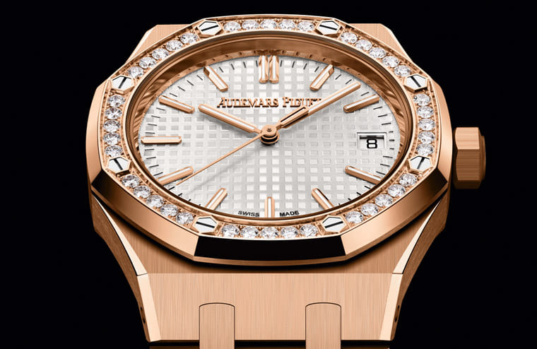 ▲AP另外推出表圈镶钻的华丽版本,包括精钢材质或玫瑰金材质都能找到镶钻版本。
