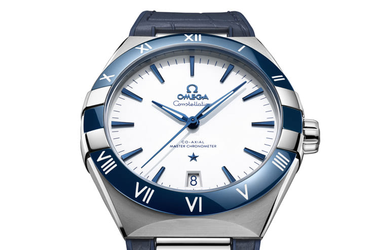 ▲41mm星座系列大三针手表2022年持续推出新款,其中包括不锈钢表壳搭配蓝色陶瓷表圈与白色陶瓷面盘款式。
