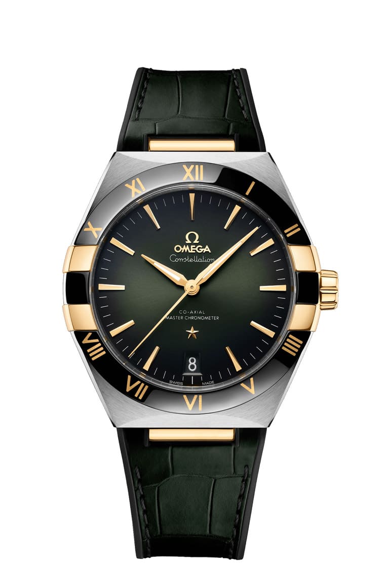 OMEGA欧米茄继2020年首度发表配置陶瓷表圈的Constellation星座系列大三针手表(41mm)后,2022年继续推出更多款式抢市,且有别于上次那批作品是採用市场主流的面盘配色如蓝色、黑色或灰色,今年新作在面盘顏色上的尝试更为积极 ,让喜欢「特殊色」风格的人可以找到更适合自己的款式。