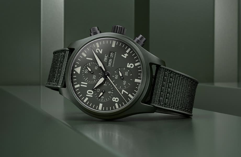 回顾IWC于2019年发表的飞行员系列Top Gun海军空战部队计时码表「莫哈韦沙漠」特别版,是首款採用黑色陶瓷以外的陶瓷壳Top Gun系列作品。如今IWC又新增了两款白色和绿色陶瓷计时码表,让Top Gun系列的陶瓷家族更趋完备。