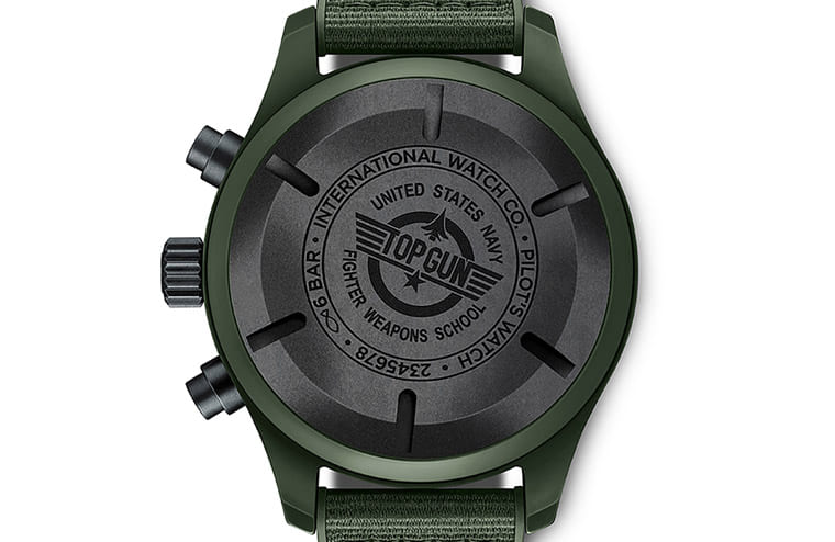 两款计时码表皆搭载IWC自制的69380自动机芯,内部具有传统的导柱轮设计,且机芯外围配备软铁内壳,可有效保护机芯不受磁场效应影响。表款防水性能均为60米,表背鐫刻Top Gun系列着名的海军空战部队标志。